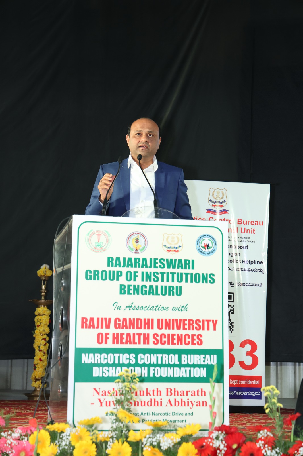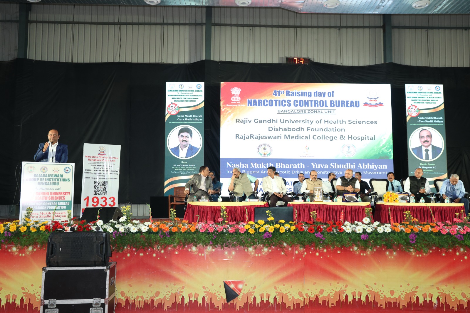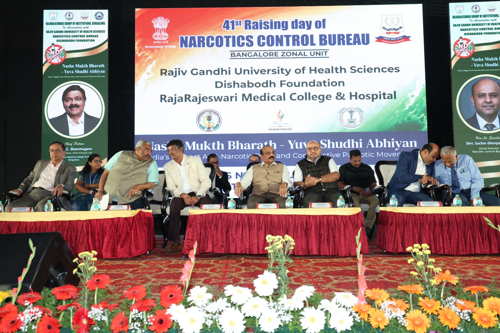 The 41st Raising Day of the Narcotics Control Bureau was commemorated with a Drug Misuse Awareness Program under the Nasha Mukt Bharat Abhiyaan on 17th March 2026 at the ACS Convention Centre, RRMCH. The event was organized by RajaRajeswari Group of Institutions in association with Rajiv Gandhi University of Health Sciences, Narcotics Control Bureau, and Disha Bodh Foundation.