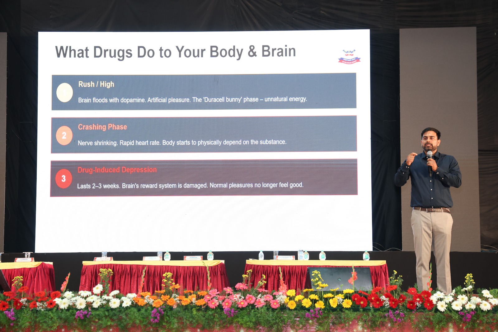 The session also featured an informative presentation by Sri. Vikas Singh, Sub-Inspector, NCB, representing Disha Bodh Foundation, who highlighted the severe and long-term effects of drug abuse. He emphasized that recovery from addiction is difficult, reinforcing the importance of prevention and awareness.