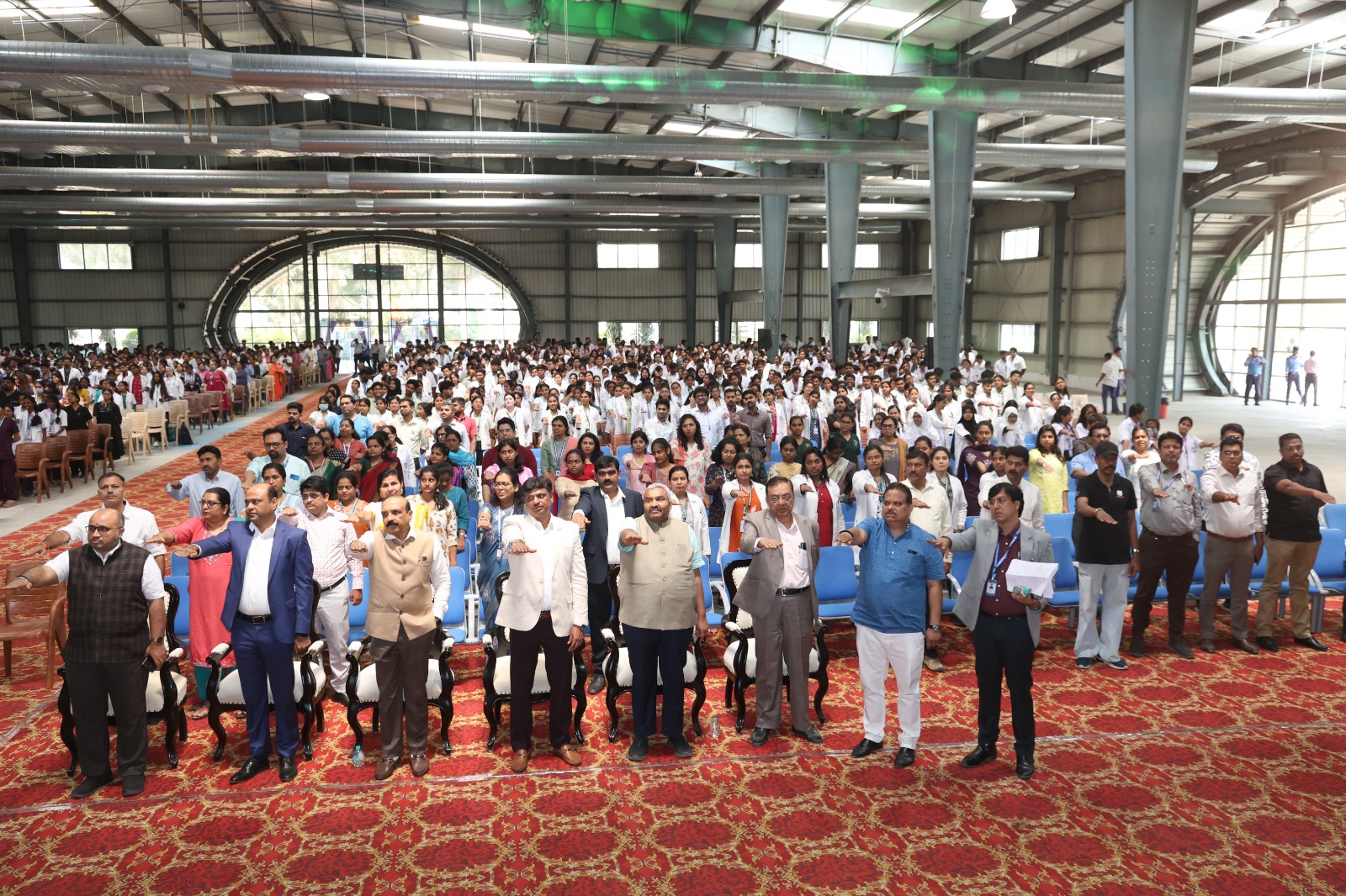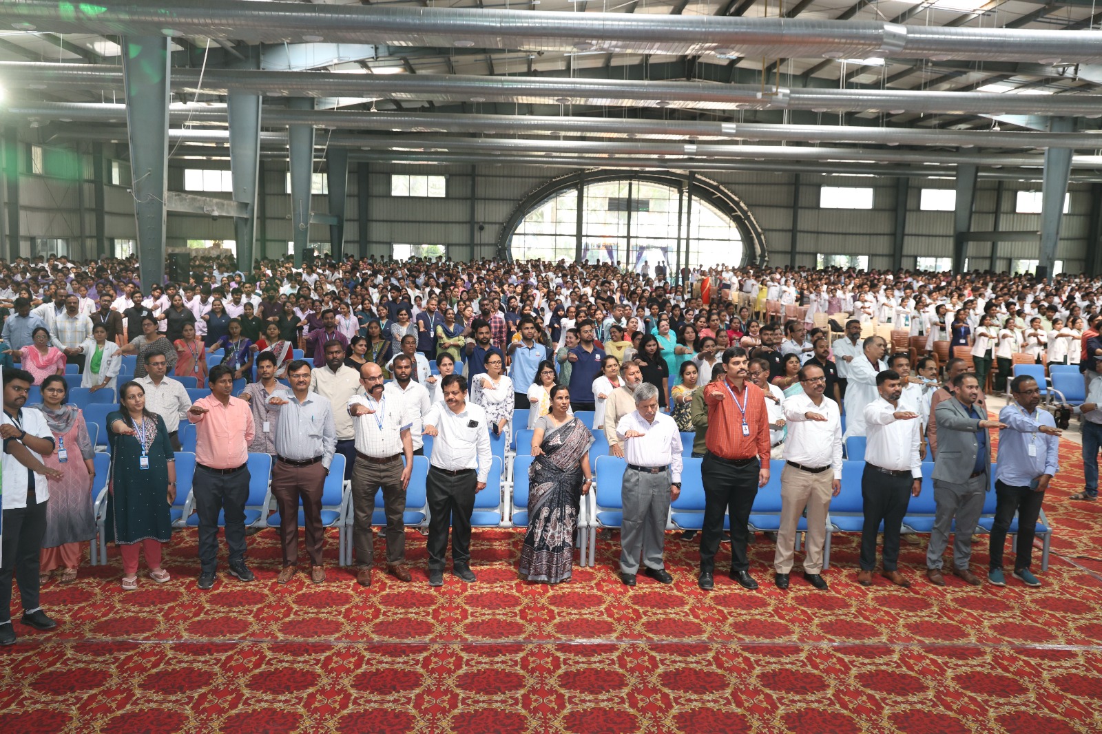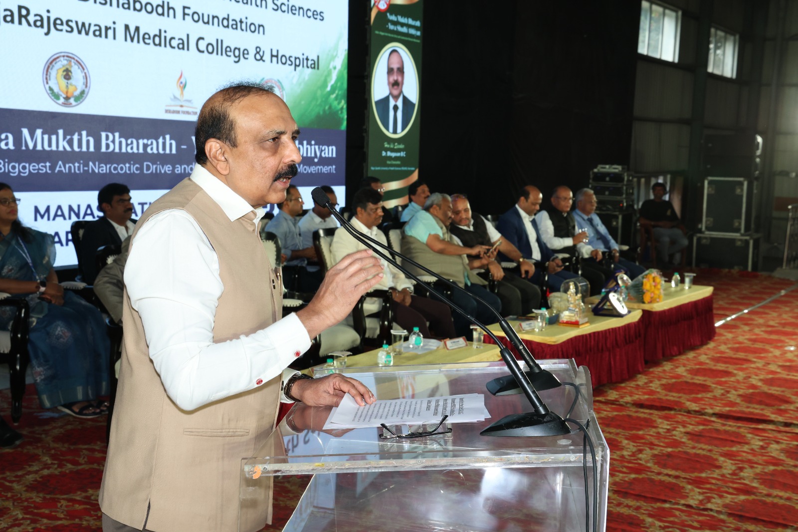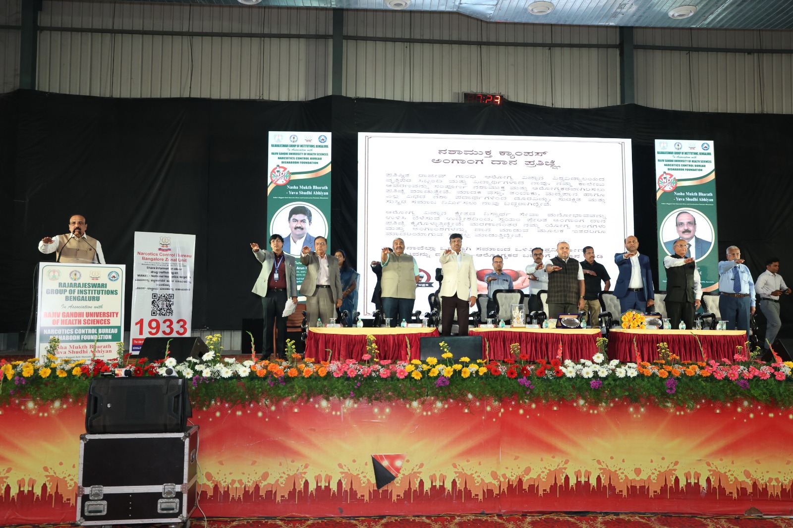 In his address, the Vice Chancellor of RGUHS appreciated the efforts of the Narcotics Control Bureau and emphasized the “Nasha Mukt Bharat – Yuva Shudhi Abhiyan.” He highlighted the MoU with RGUHS, under which awareness programs were conducted across 13 districts through 16 events, reaching over 77,000 students and 1,500 teachers. He urged students to pledge against drug abuse, promote a healthy campus, and noted that 10,000–12,000 students have also pledged for organ donation.