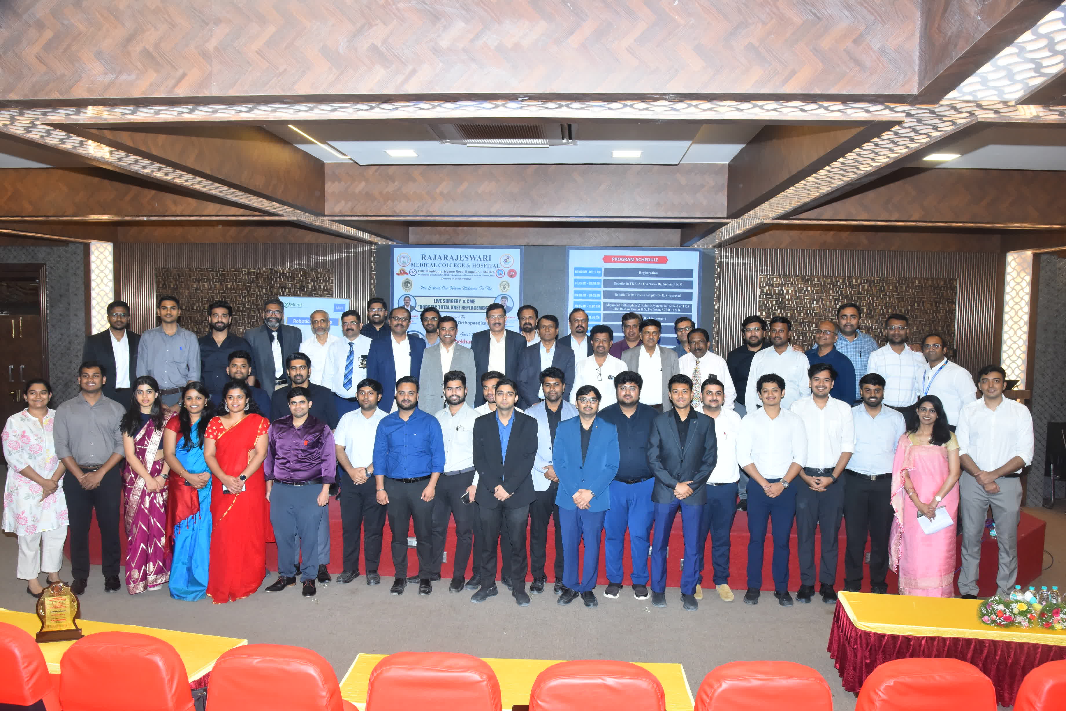 The Department of Orthopaedics at RajaRajeswari Medical College & Hospital achieved a significant milestone on 20th February 2026 by successfully conducting its first-ever Live Robotic Total Knee Replacement, marking a transformative advancement in precision-driven orthopaedic care.