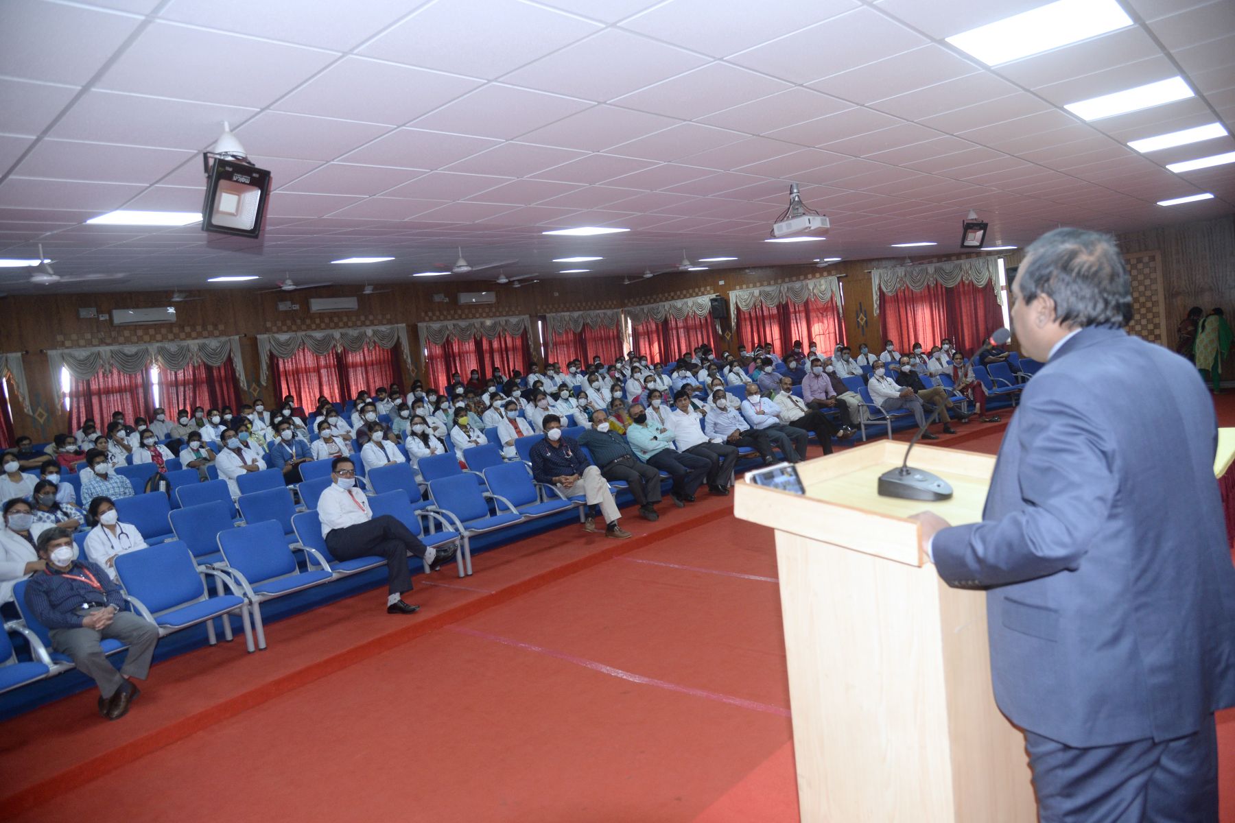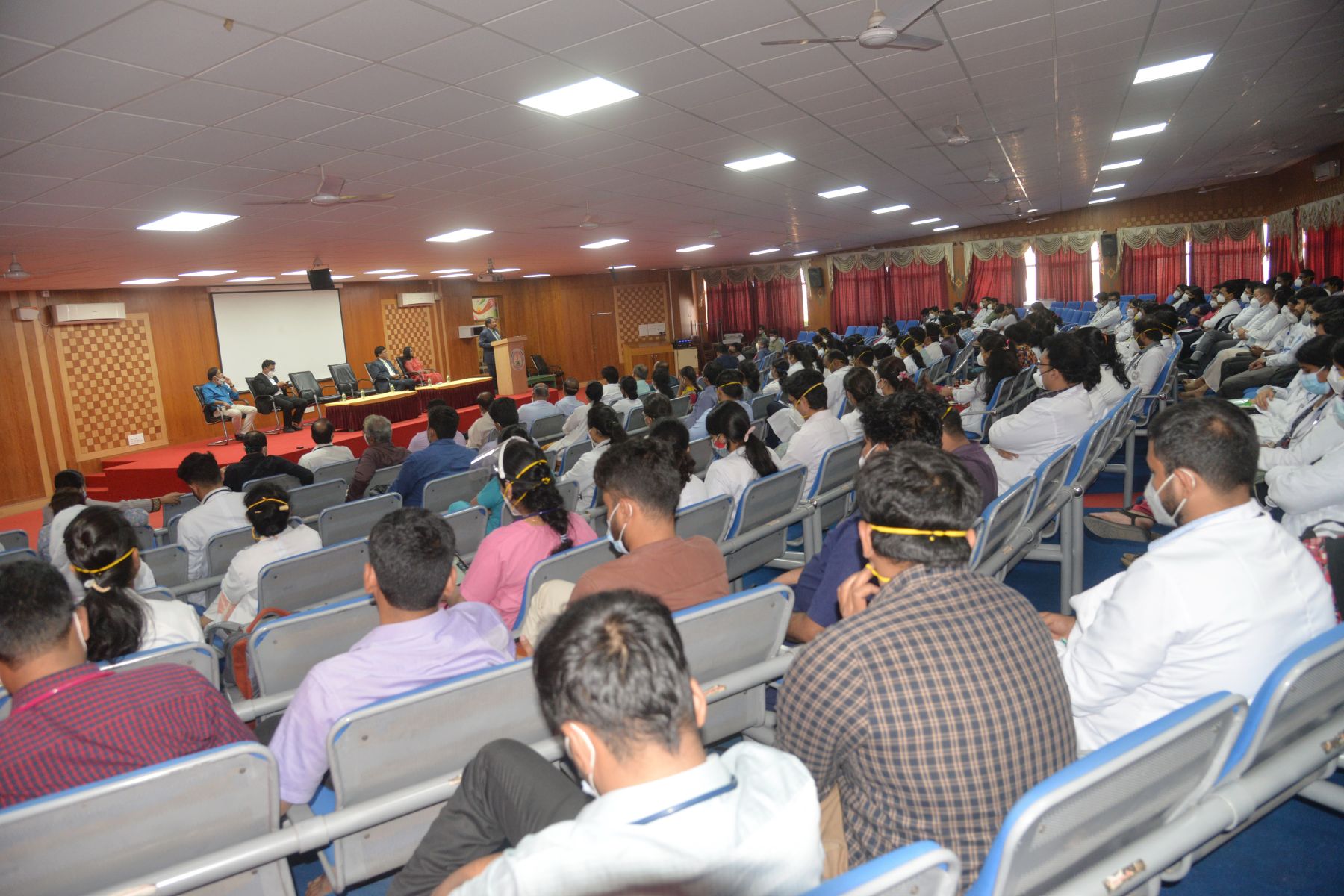 Dr. Jayallal addressed all the Faculties, Post Graduates and interns present in the occasion and in his speech addressing the audience précised mainly about “Mixopathy”. He expressed that the Permission given to Ayurveda doctors for surgery is not correct or not advisable. He also interacted with the audience for their queries and responded to them with at most significance.