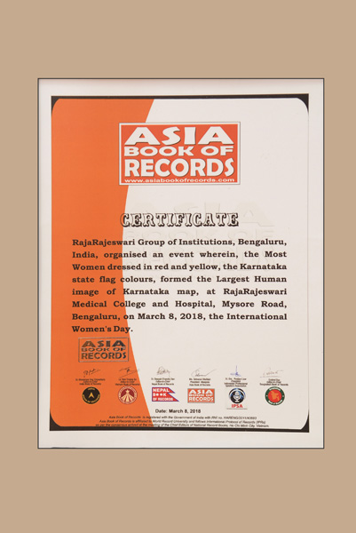 This year on March 8th, RajaRajeswari Group Of Institutions women have entered the record books of Asia Book of Records and India Book Of Records with 4 records. The records are as follows