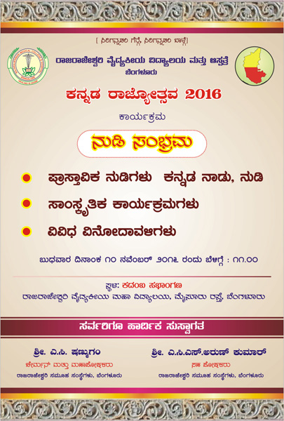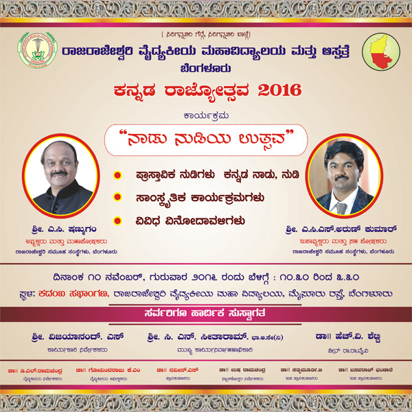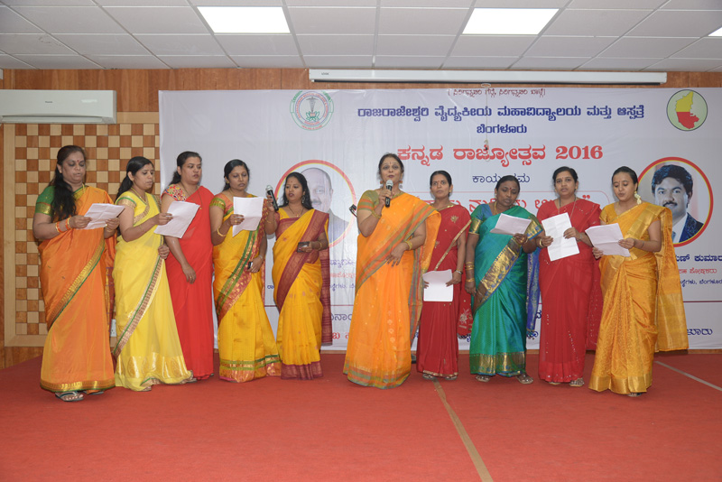 10th November Thursday, RajaRajeswari Medical College and Hospital celebrated Kannada Rajyotsava. All the Kannada enthusiasts actively took part in the Kannada Rajyotsava program. All the Management and dignitaries were present on the occasion. Welcoming the dignitaries, Dean, RRMCH, Dr. H.V. Shetty, said that RajaRajeswari Medical College and Hospital has set an unprecedented bench mark by conducting Kannada Rajyotsava program for the past 6 years.