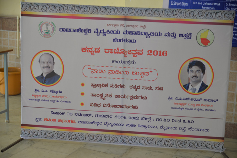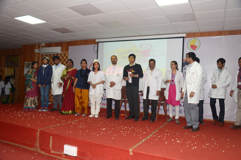 The faculty and the staff of RRMCH participated with full significance. The department of Dermatology presented a colourful program, depicted the rich heritage of Karnataka with wonderful costumes, which was truly mesmerizing. Speaking on the occasion, IAS Officer, CEO of RRMCH Mr. C. N. Seetharam gave brief details about the Karnataka’s existence and importance of Kannada language.