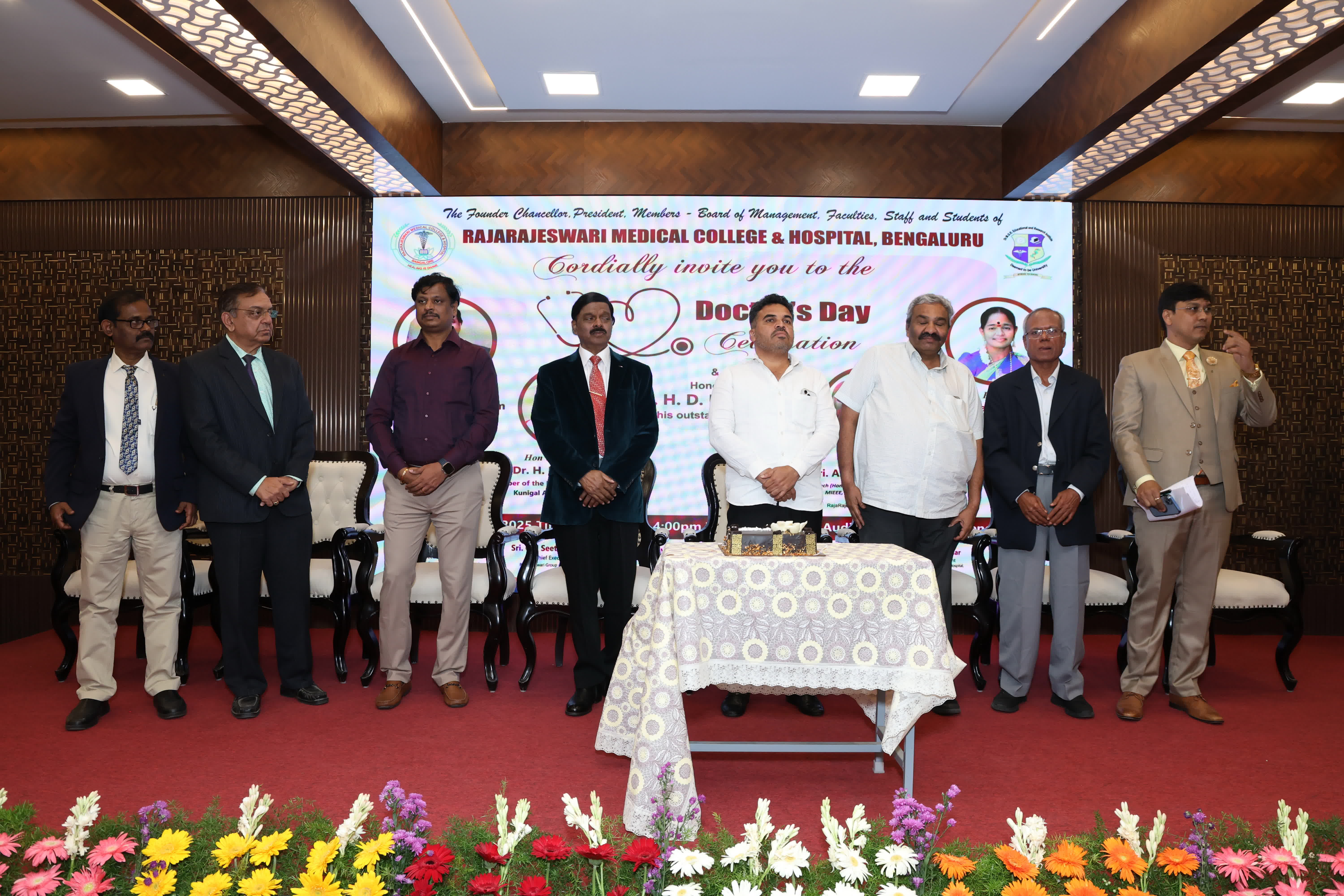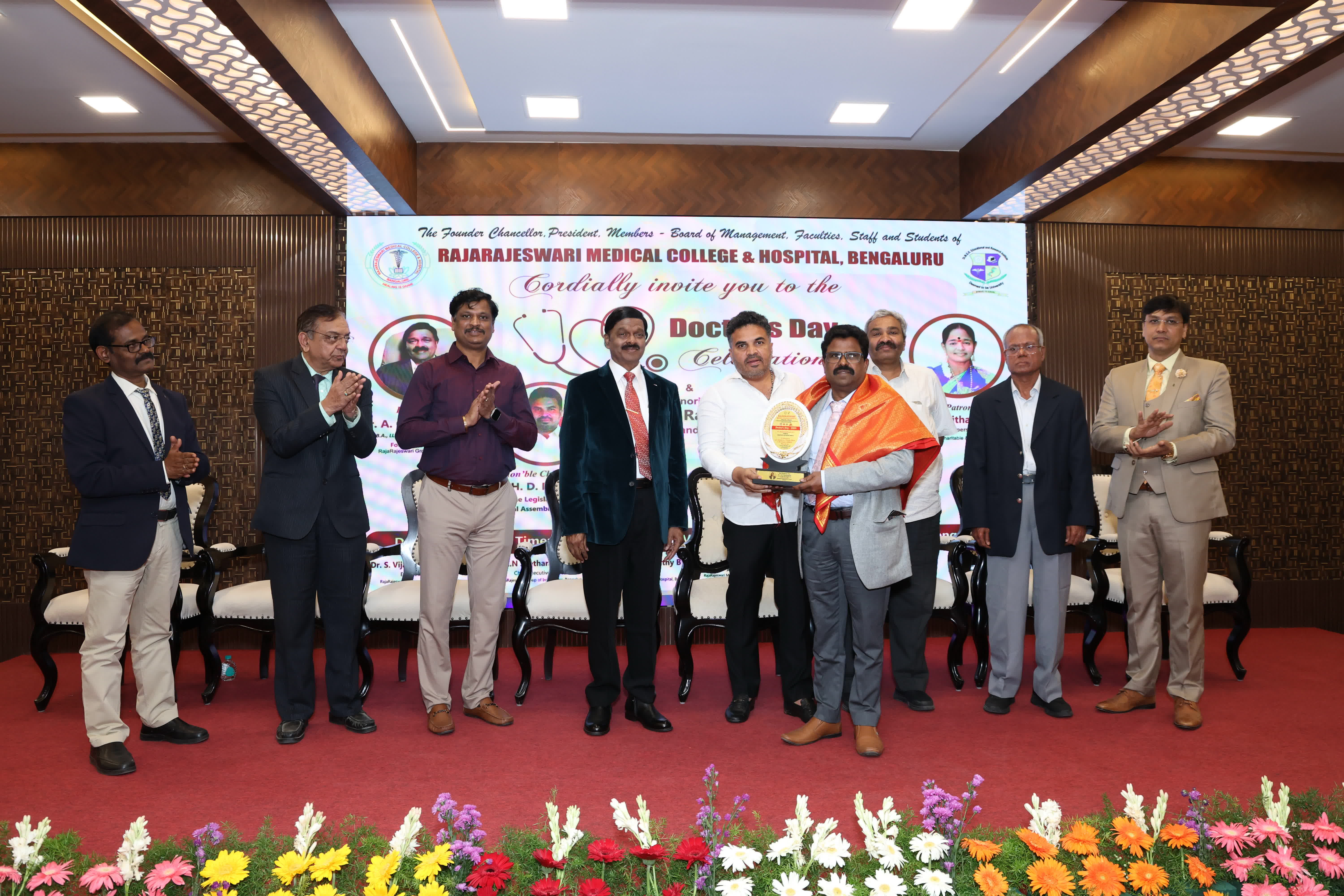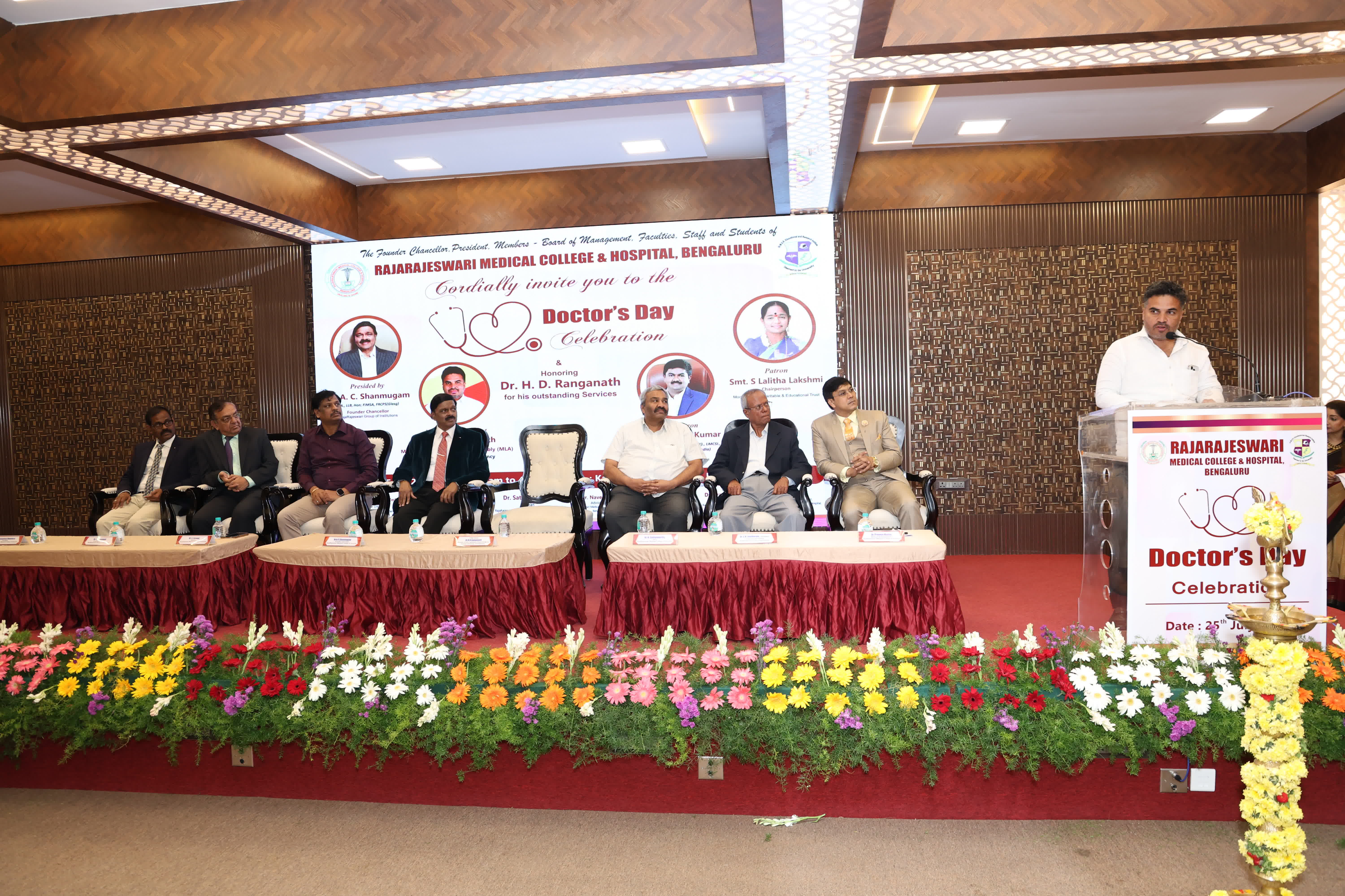 RajaRajeswari Medical College & Hospital celebrated Doctors’ Day on 24th July 2025 at Kadamba Hall with great pride and enthusiasm. The event was honored by the presence of our Founder Chancellor, Dr. A.C. Shanmugham, and Chief Guest Dr. H.D. Ranganth, MLA of Kunigal Constituency.