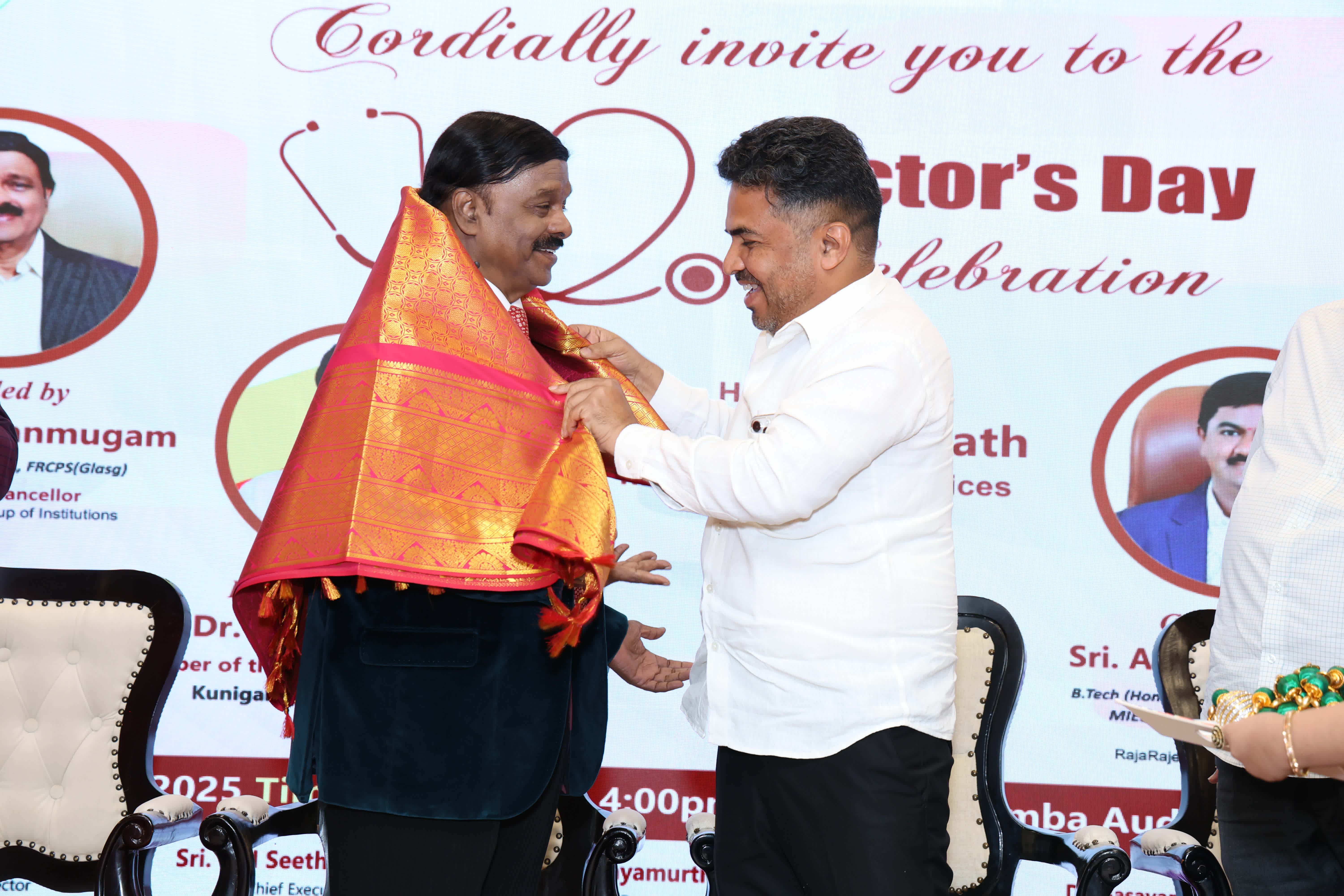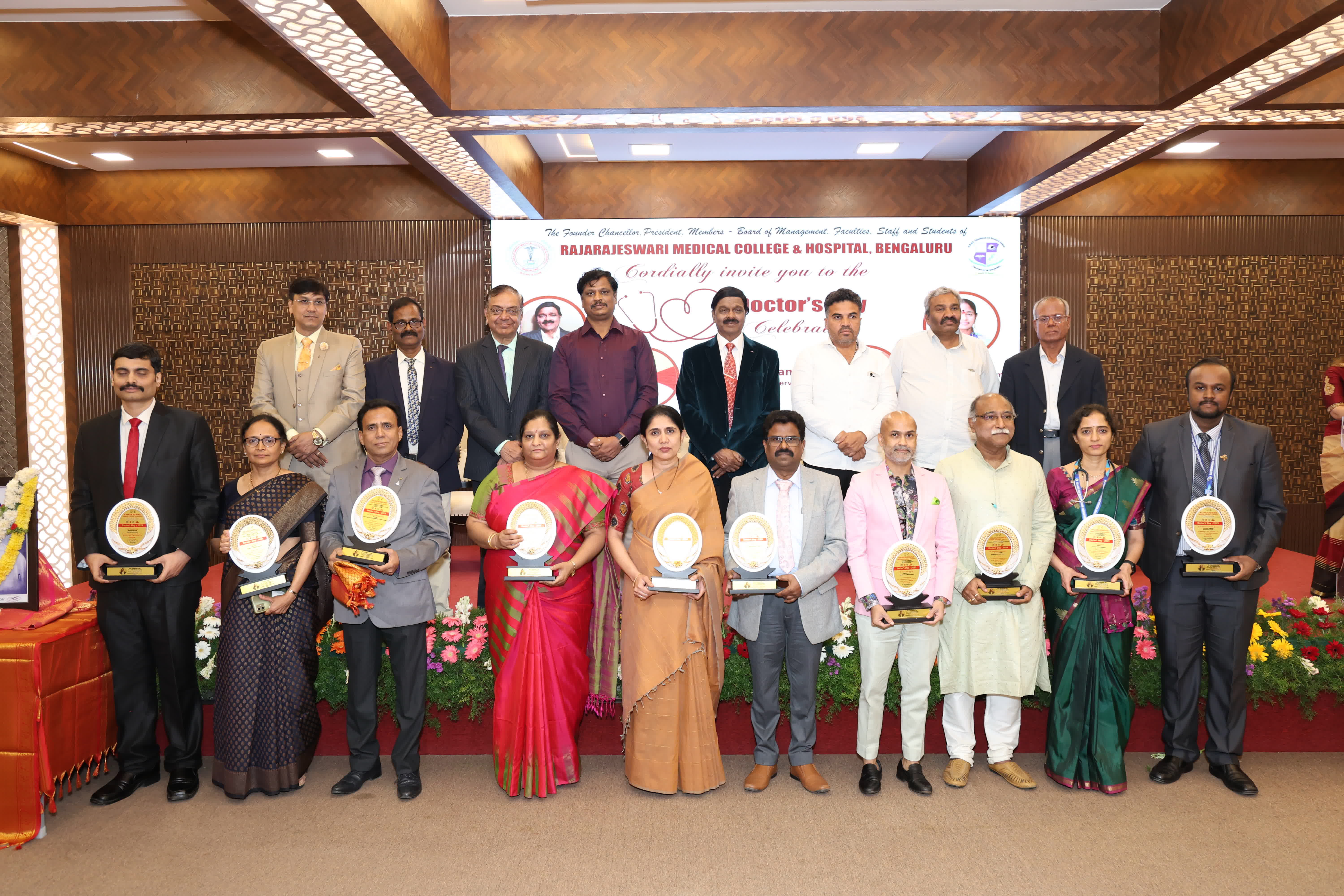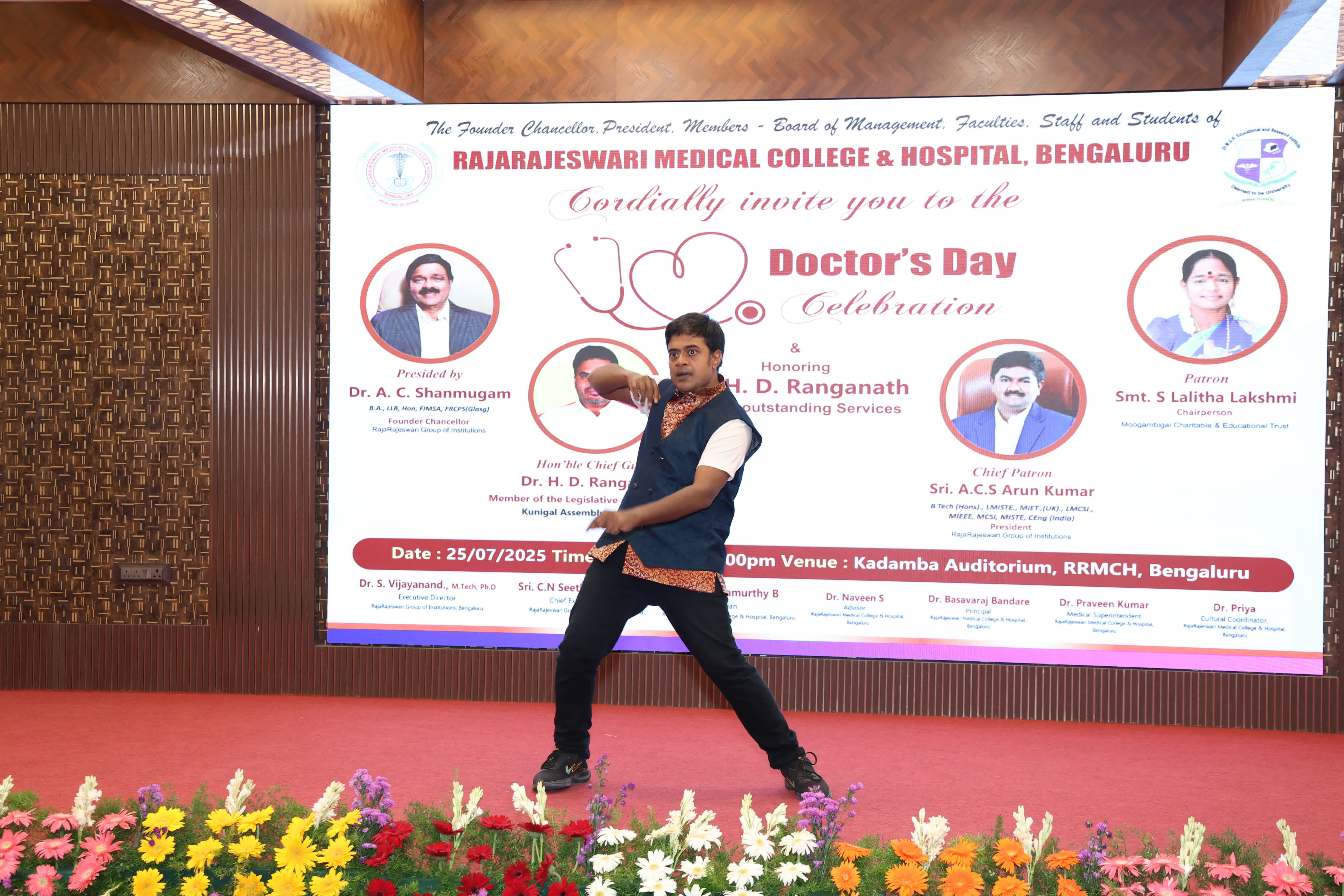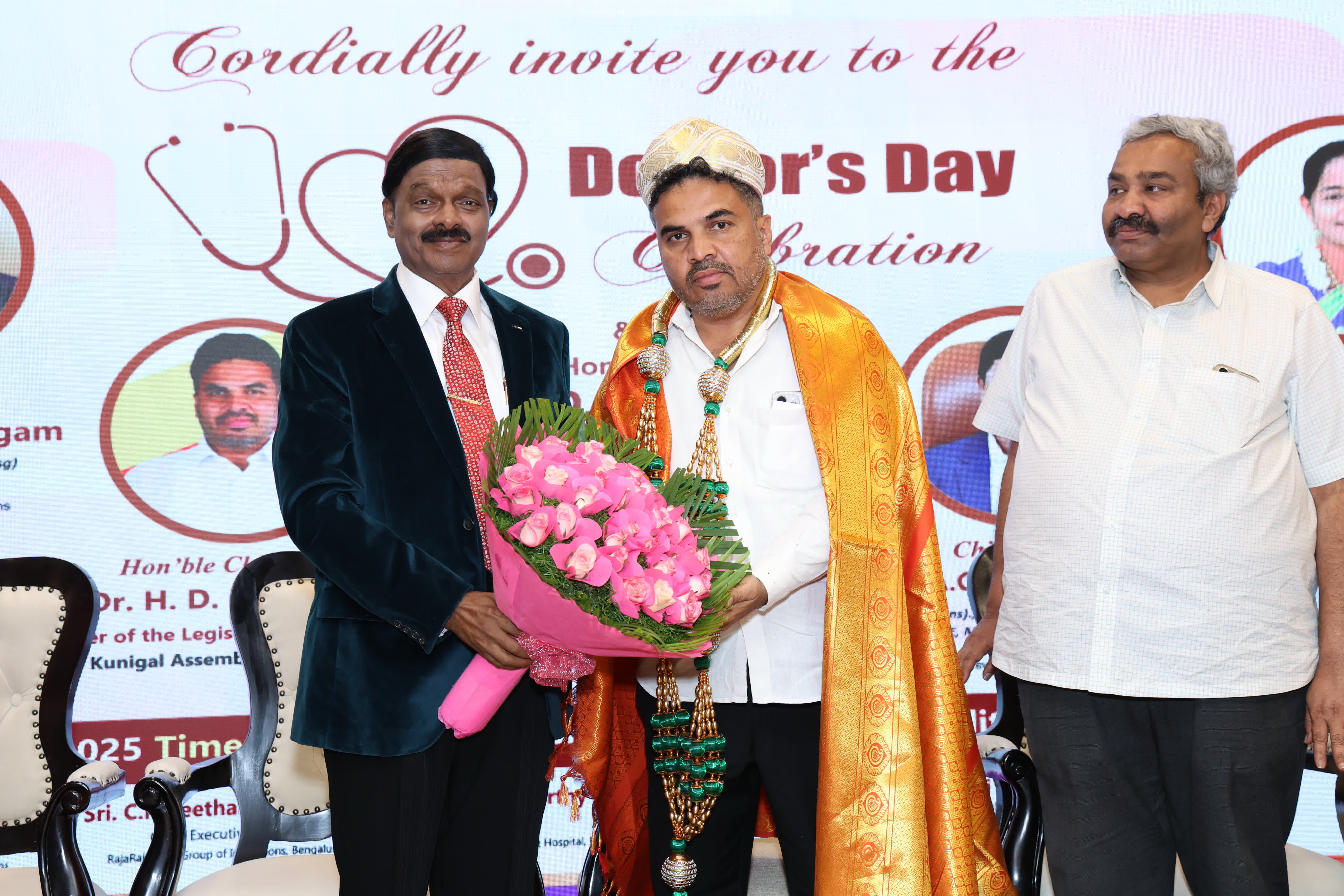 RajaRajeswari Medical College & Hospital celebrated Doctors’ Day on 24th July 2025 at Kadamba Hall with great pride and enthusiasm. The event was honored by the presence of our Founder Chancellor, Dr. A.C. Shanmugham, and Chief Guest Dr. H.D. Ranganth, MLA of Kunigal Constituency.