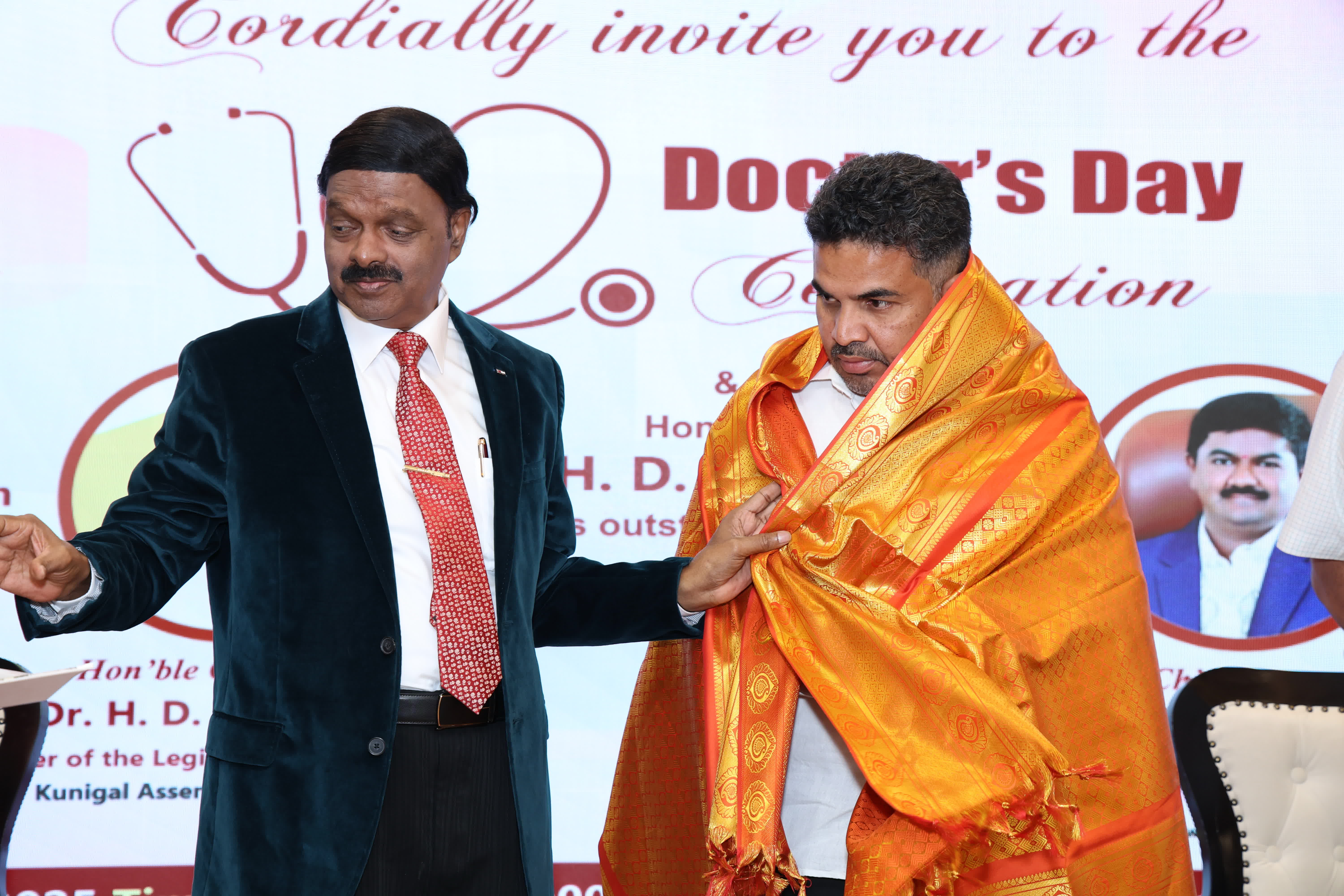 The program commenced with a warm welcome by Dean Dr. Sathyamurthy, followed by the traditional lighting of the lamp. Dr. A.C. Shanmugham delivered an inspiring address, emphasizing the vital role of doctors in society and applauding their selfless service to humanity. Chief Guest Dr. H.D. Ranganth shared his heartfelt appreciation for the medical profession, drawing from his personal experiences and deep respect for healthcare workers.