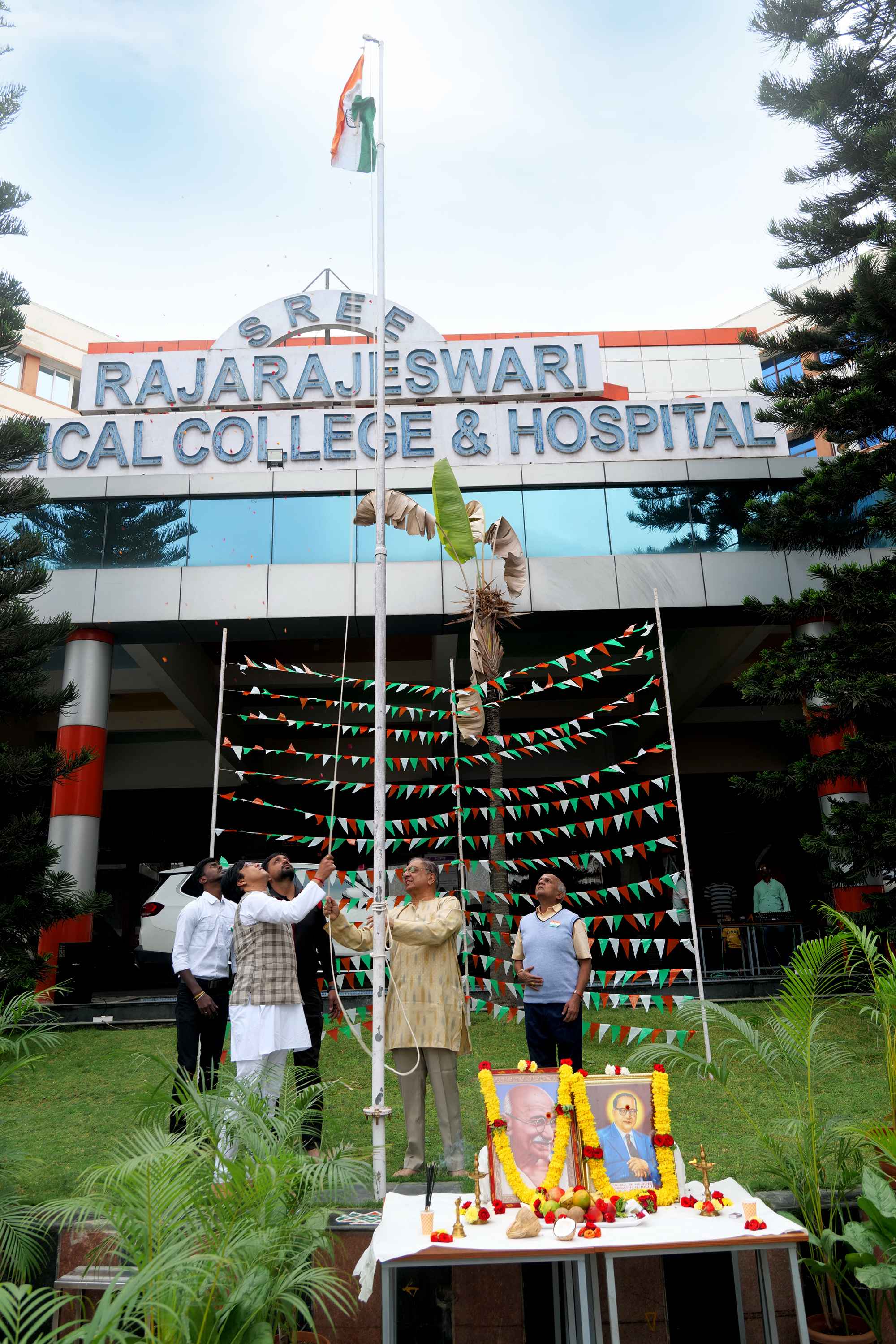 RajaRajeswari Medical College and Hospital celebrated the 77th Republic Day of India on January 26 with great enthusiasm and patriotic spirit. The occasion commemorated the historic adoption of the Indian Constitution in 1950, marking India’s journey as a sovereign republic.