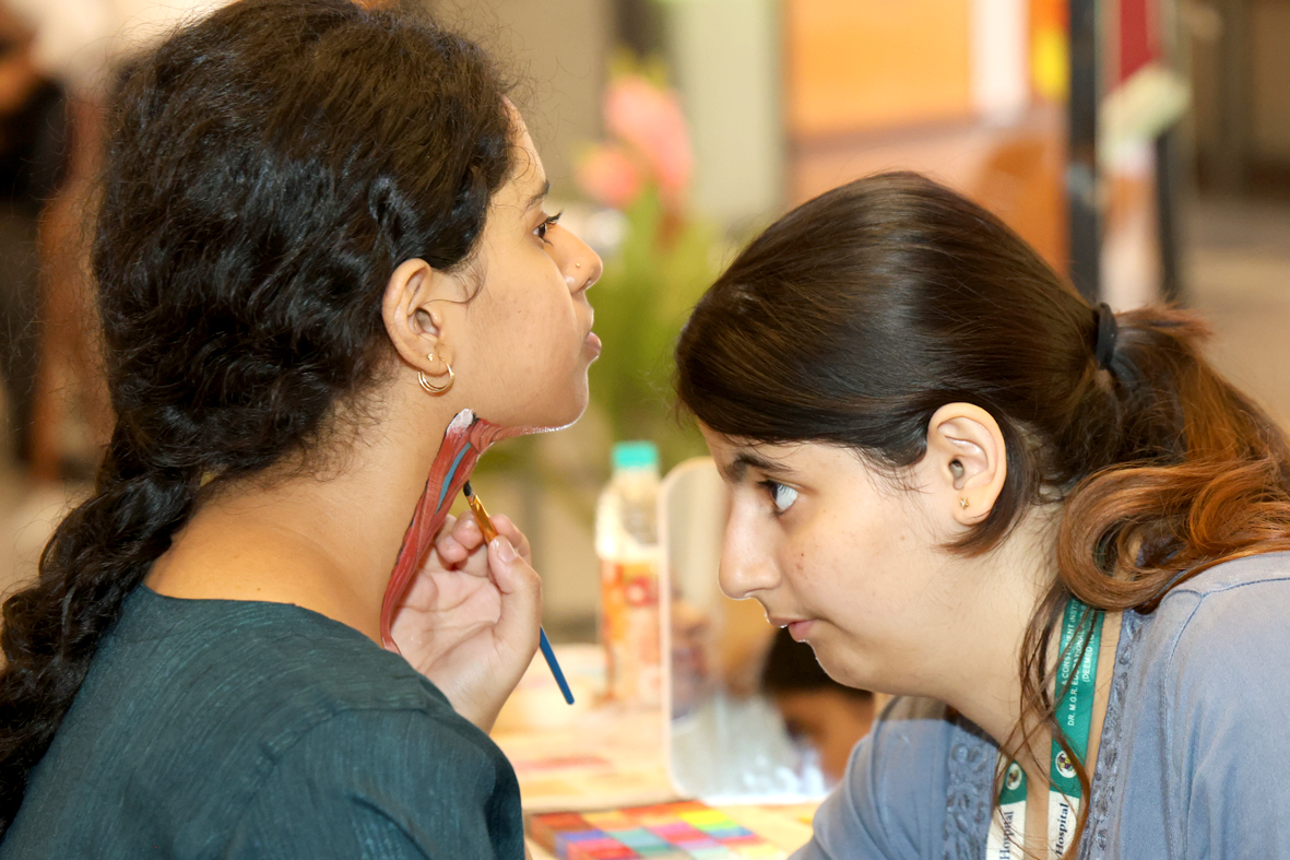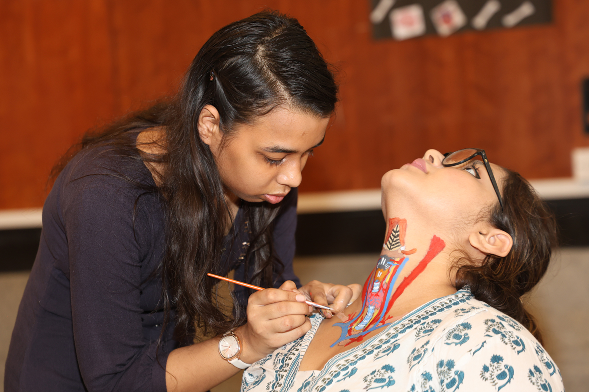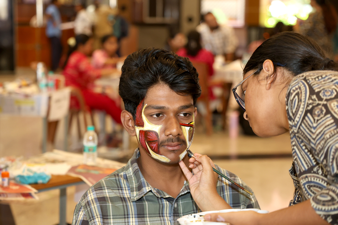 The event witnessed enthusiastic participation from 23 teams, each demonstrating remarkable creativity and dedication. The themes for the competition, Head & Neck and Upper Limb, were chosen by the participants, allowing them the flexibility to interpret and present complex anatomical structures in their own distinctive styles. Through intricate designs and thoughtful execution, students transformed the human face into a dynamic canvas, effectively illustrating underlying anatomical features.