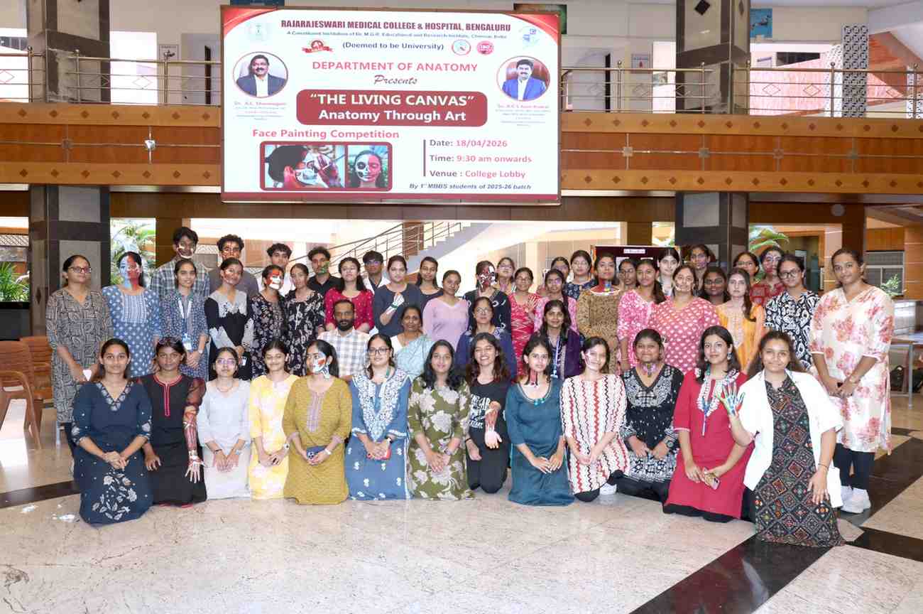The Department of Anatomy at Rajarajeswari Medical College & Hospital successfully organized an innovative and vibrant event titled “The Living Canvas: Anatomy Through Art” on 18th April 2026. The face-painting competition was conceptualized as a unique platform to integrate artistic expression with anatomical learning, encouraging students to explore the human body beyond conventional methods of study.