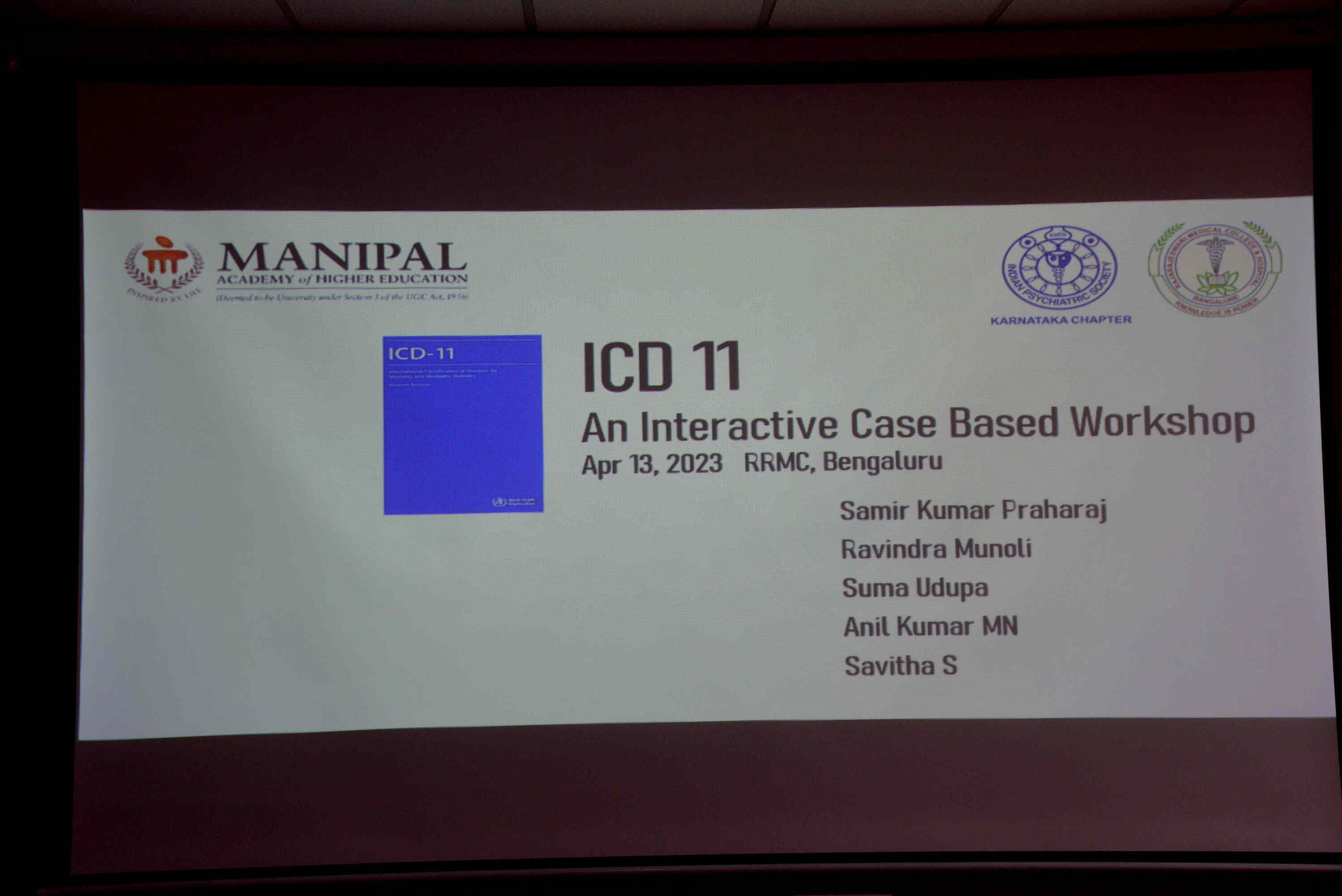 The Department of Psychiatry has organized a workshop on …………. Title : ICD – 11 Date : 13/03/2023 Time : 9:00 am to 4:00 pm Venue : Kadamba Hall (College Auditorium)