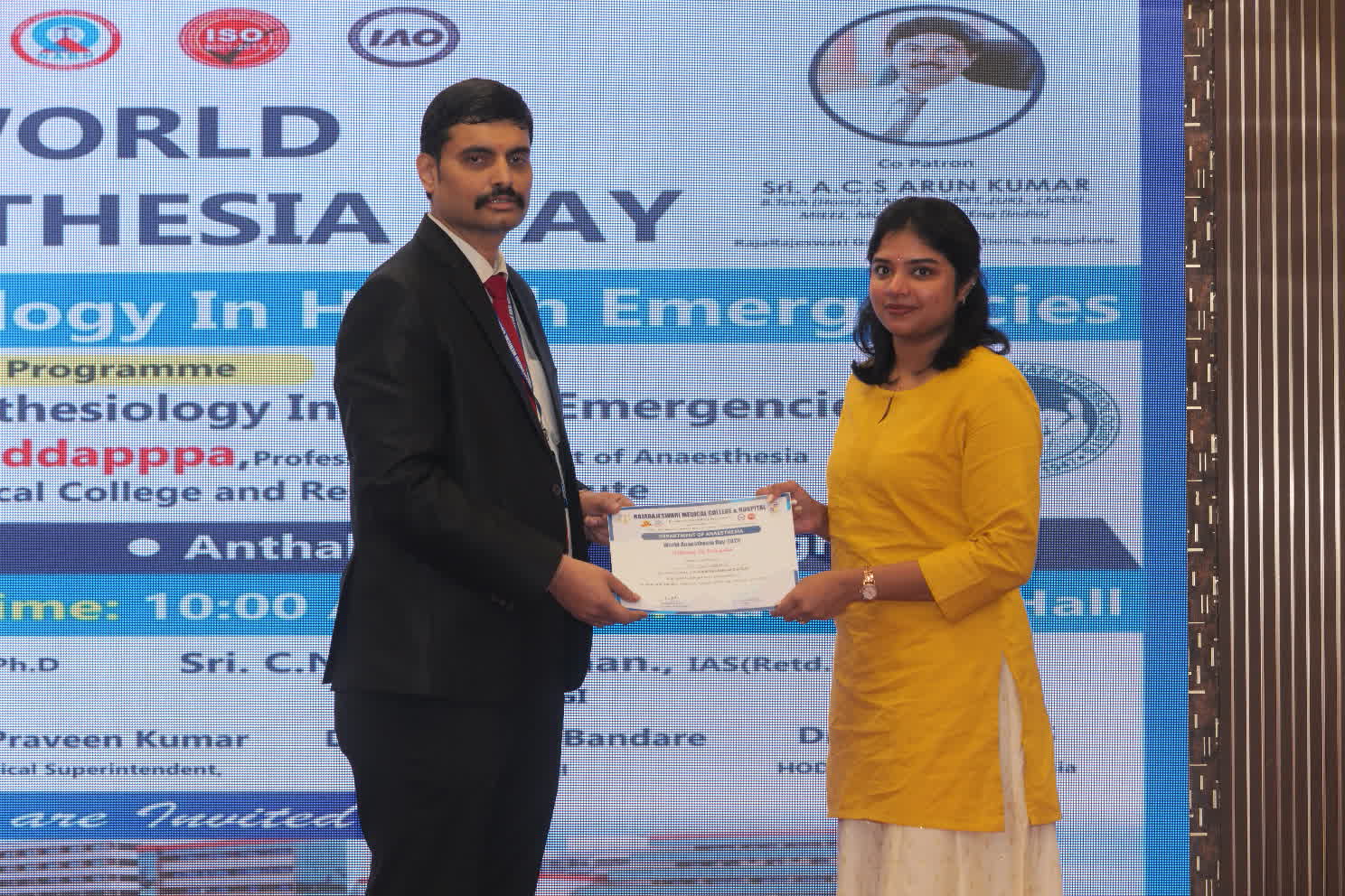A highlight of the day was an inspirational talk by Dr. Vinay Marulasiddappa on “Anaesthesiology in Health Emergencies.” His address emphasized the evolving responsibilities of anaesthesiologists in disaster response and emergency care.