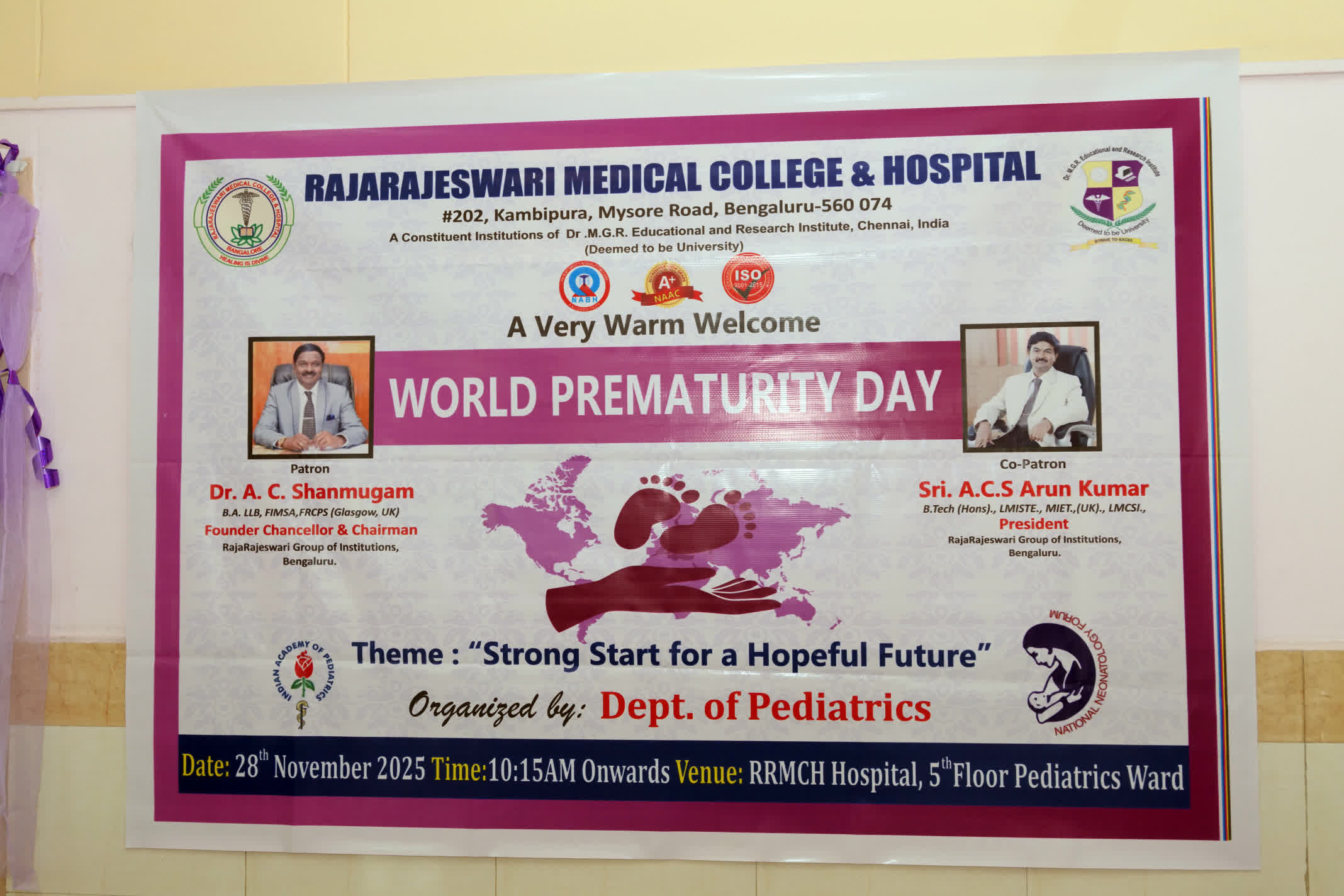 The Department of Pediatrics & Neonatology, RRMCH, observed World Prematurity Day 2025 on 28th November 2025 with the global theme “Strong Start for a Hopeful Future.” The event brought together families of preterm NICU graduates, faculty, and staff to celebrate the resilience and progress of babies born prematurely.