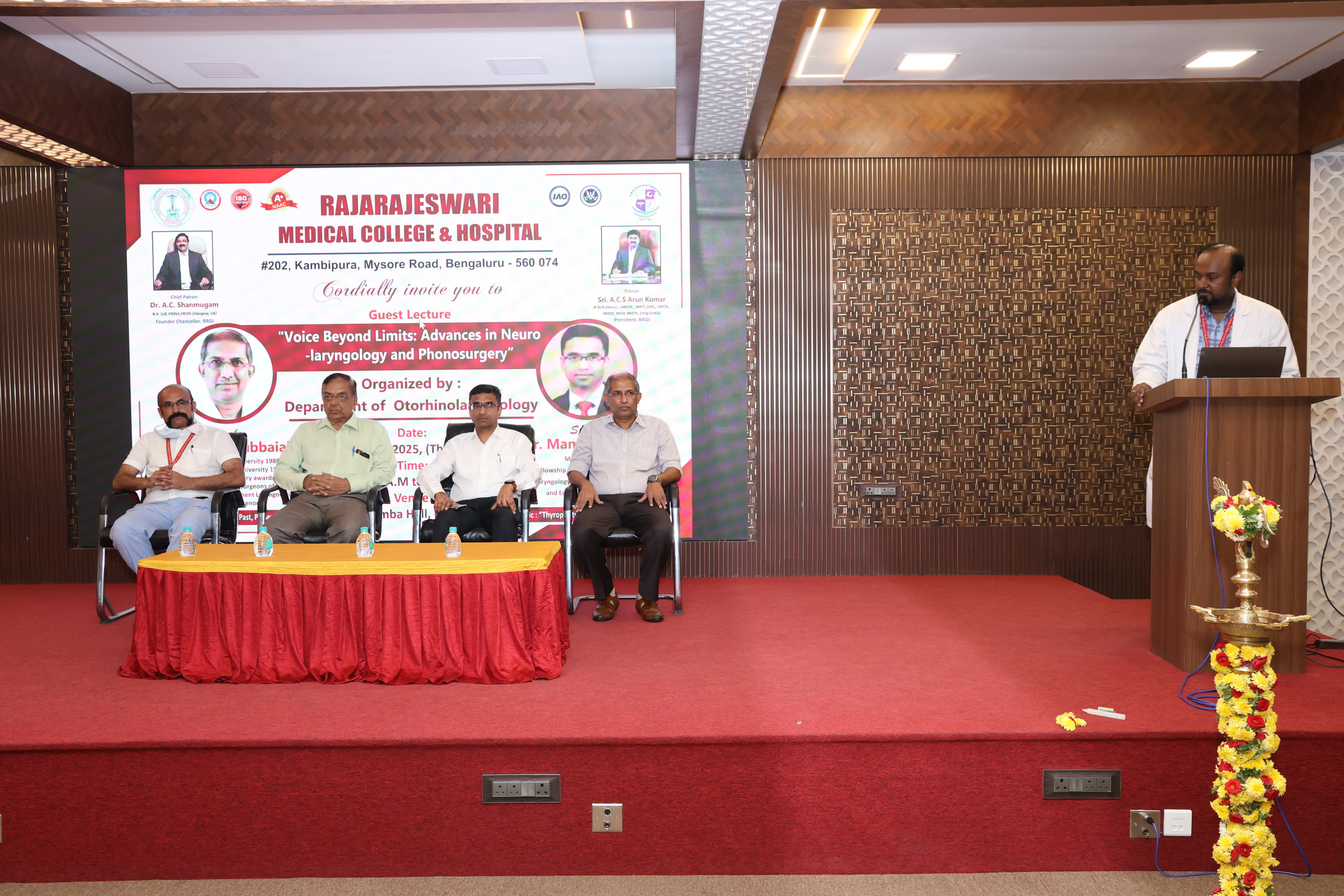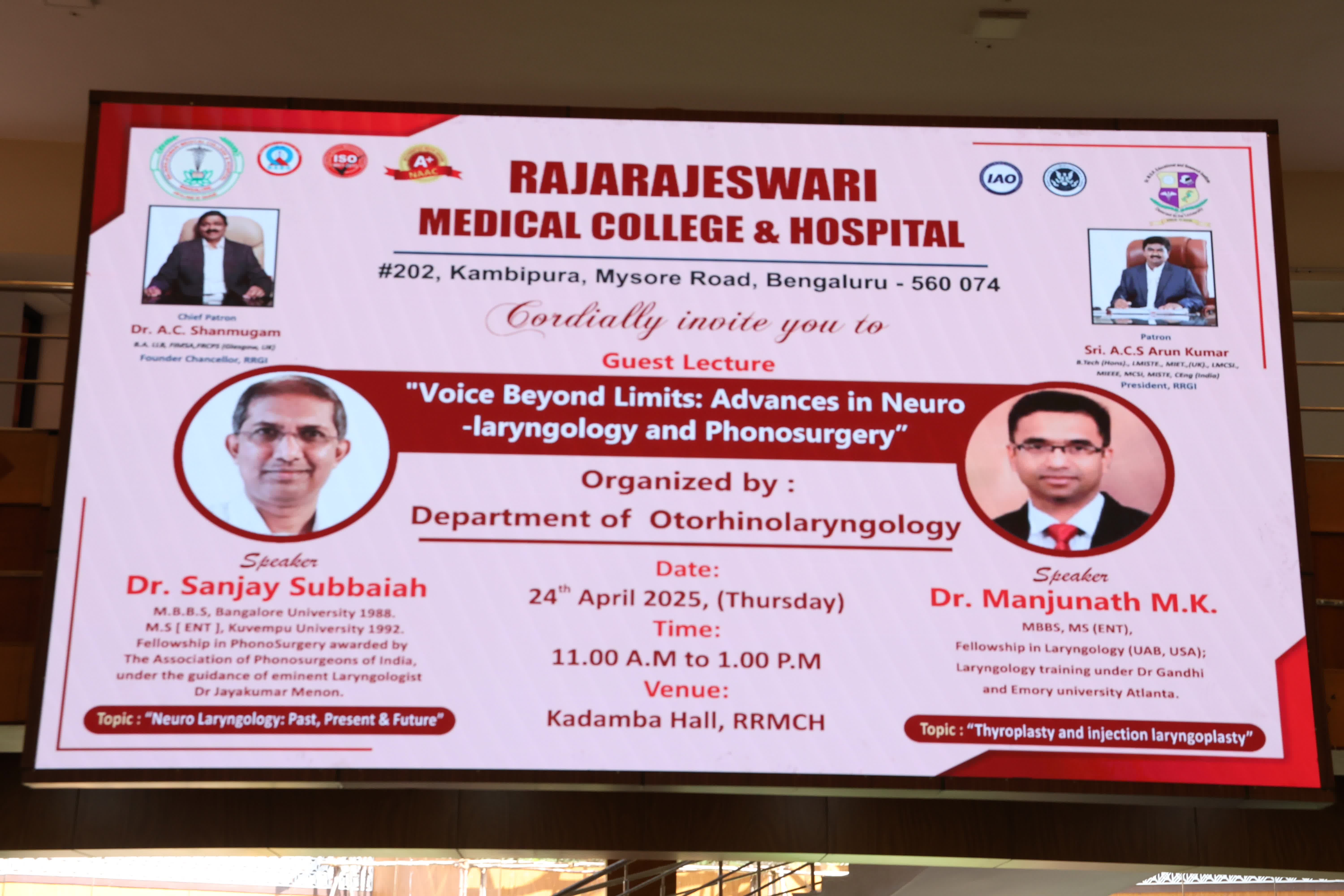 In celebration of World Voice Day, the Department of ENT & Head and Neck Surgery at RajaRajeswari Medical College & Hospital (RRMCH) organized a special guest lecture session featuring two renowned experts in the field of laryngology.