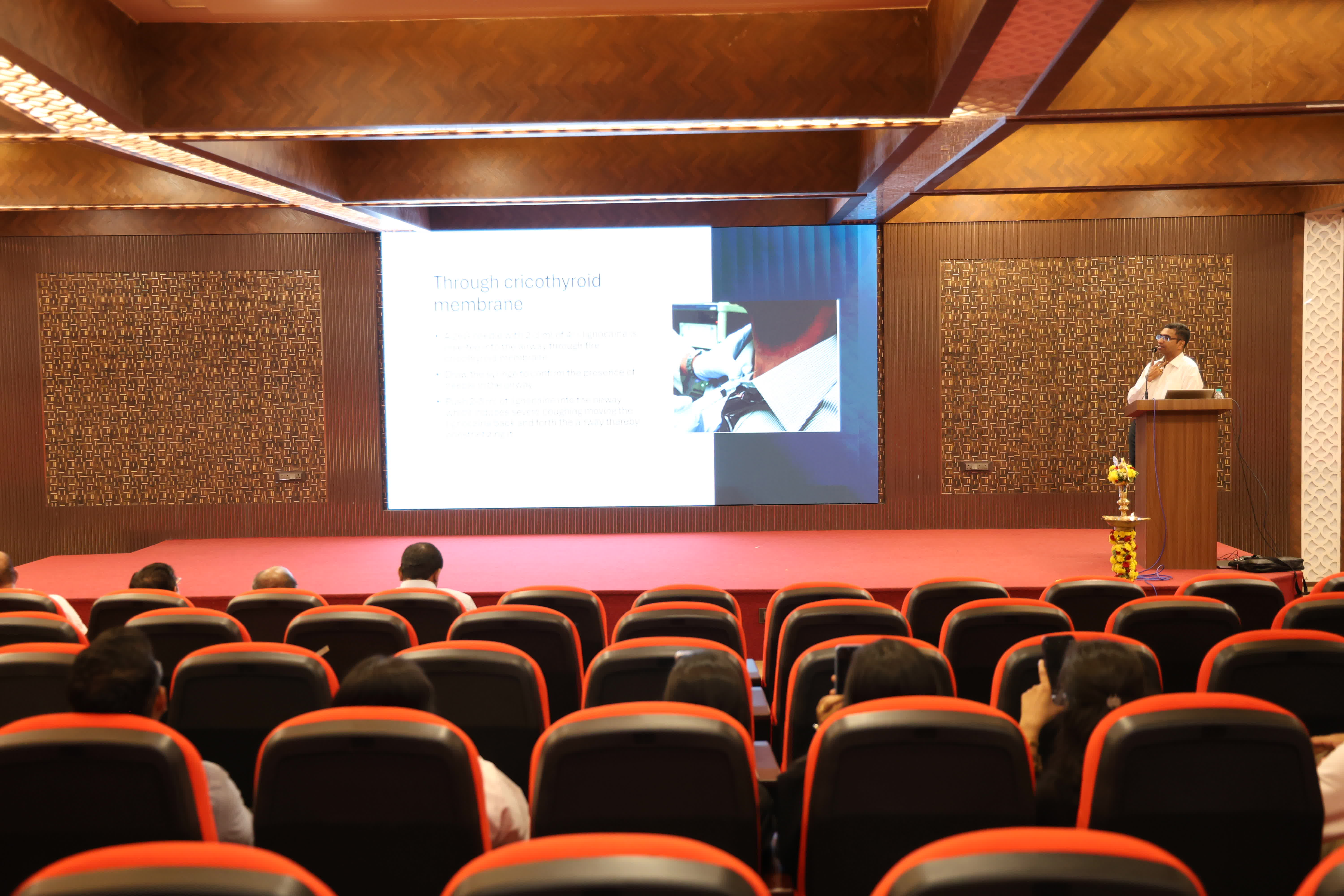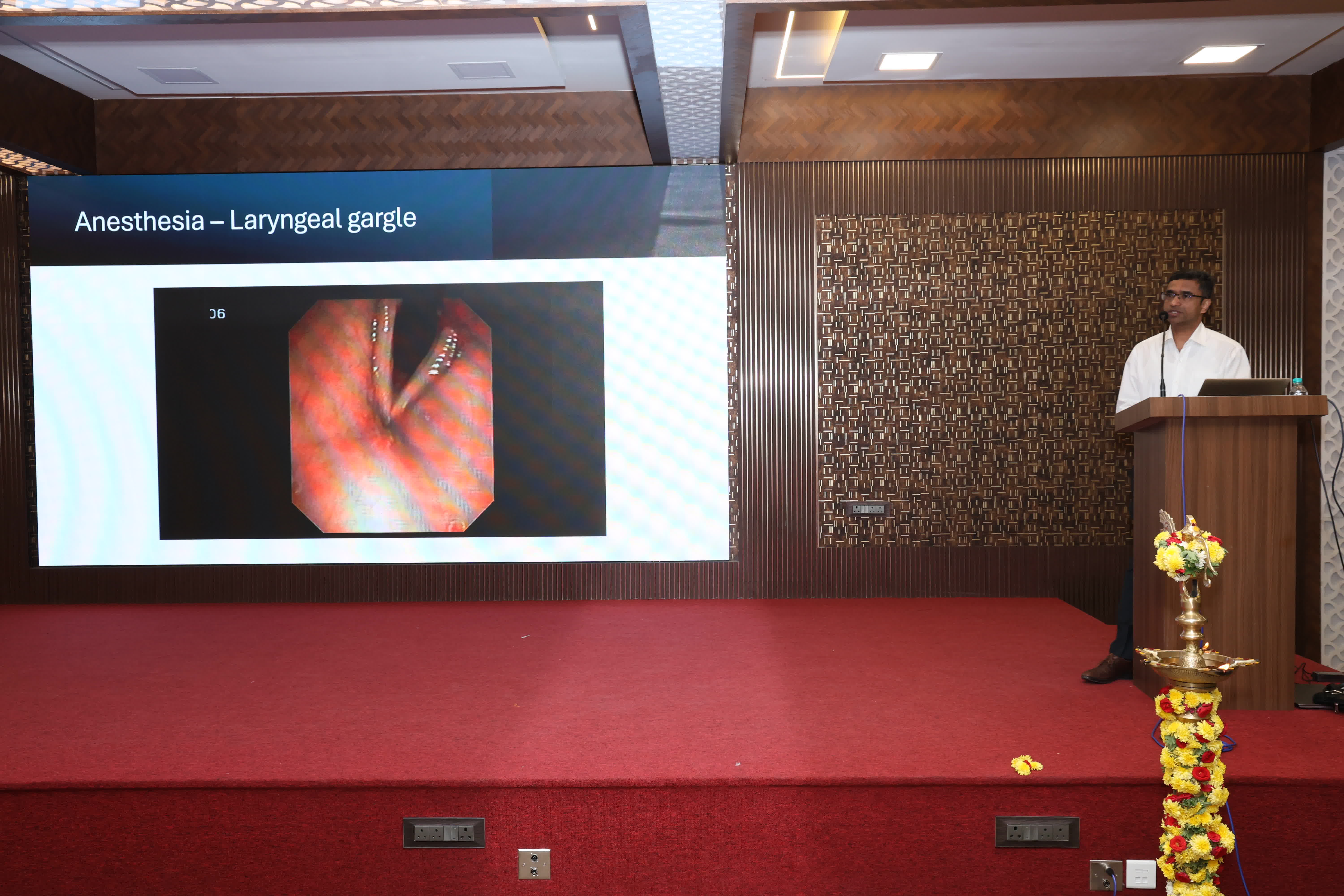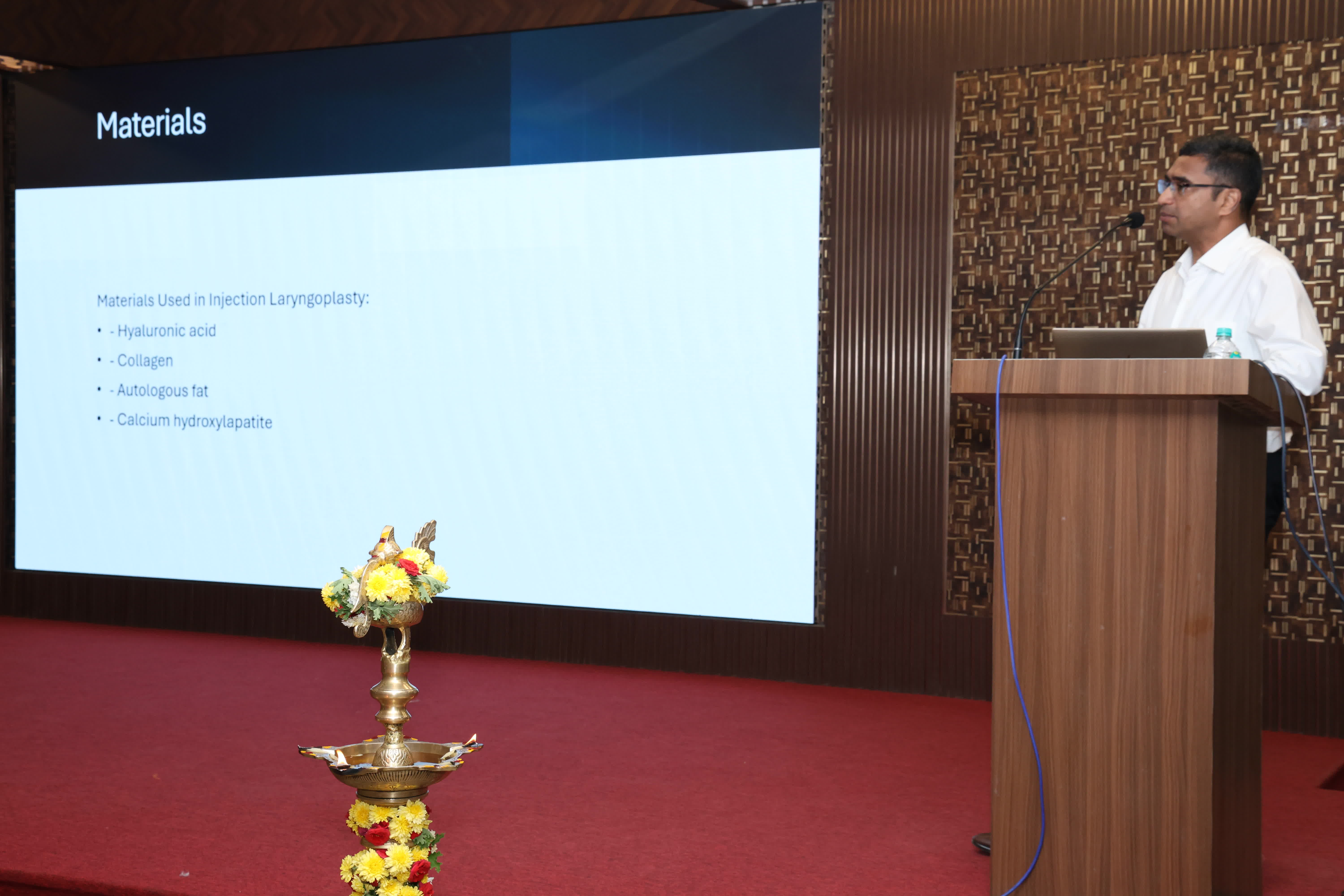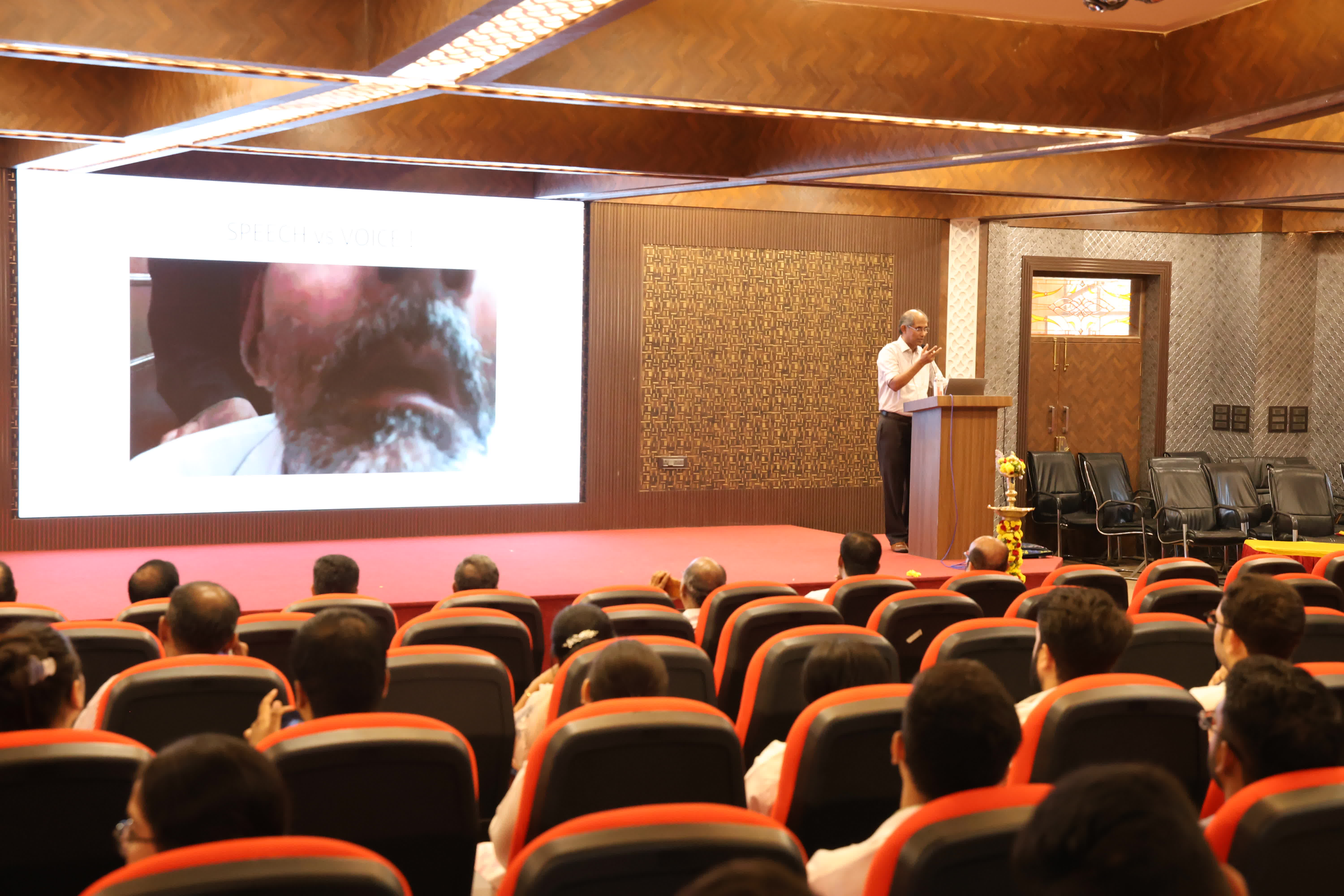 Following this, Dr. Manjunath M.K. presented a detailed lecture on “Thyroplasty and Injection Laryngoplasty”, focusing on surgical techniques for voice restoration. He shared his expertise on patient selection, procedural nuances, and outcome expectations, offering practical guidance drawn from his extensive surgical experience.